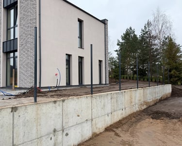 Monolitinė atraminė sienelė su segmentine tvora